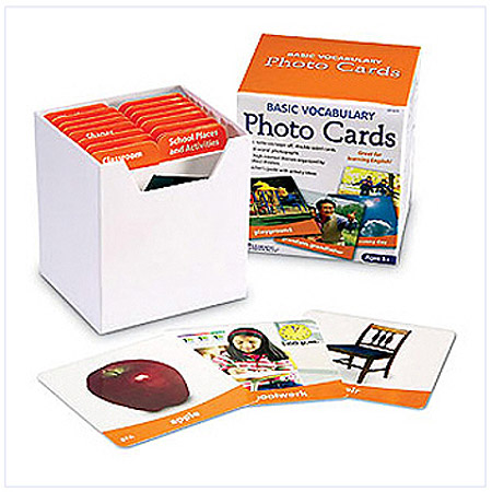 Versatile set of 156 photo-illustrated cards helps early learners, ELLs and students with special needs develop oral language skills related to everyday themes. Each 3 1/2" write-on/wipe-off card features a photograph and word(s) on one side. The reverse features the same image, plus space for writing the word(s), either in English or another language, for assessment. Set includes dividers for each of the 16 themes and a 16-page Activity Guide.