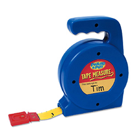 The perfect tool to introduce kids to measurement while they're having fun! Sturdy plastic tape measure is just the right size (7" x 71/2" x 3") for small hands. Measures up to 3 feet/1 meter long. Ages 3+
