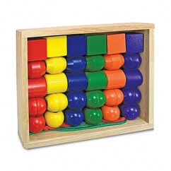 Thirty wooden beads in six vibrant colors and five distinct shapes combine with two extra-long laces for many activities. Stringing the easily grasped beads promotes hand-eye coordination, fine motor, cognitive and visual perception skills.