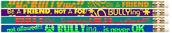 This pencil has a unique picture design to help remind a student that NO BULLYING is serious. Bright colors, bold lettering. Wood-cased USA made pencil. |