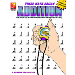 Timed Math Drills: Addition provides step-by-step practice in addition that starts with whole-page calculations using the same, single addend (1 thru 9); progresses to calculations using two different addends, and then to all-inclusive, mixed addends. The goal is to achieve mastery at the highest possible accuracy level in the lowest possible time. A chart is included on which each student's progress can be recorded. Award forms are included to validate students' achievements.