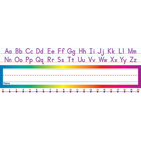 Flat, large 12" x 4" size name plates. Extra large area to write students' names! 36 name plates per pack. Notice that the number line is at the bottom on this one!.