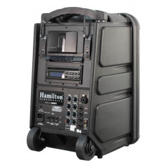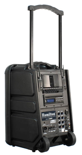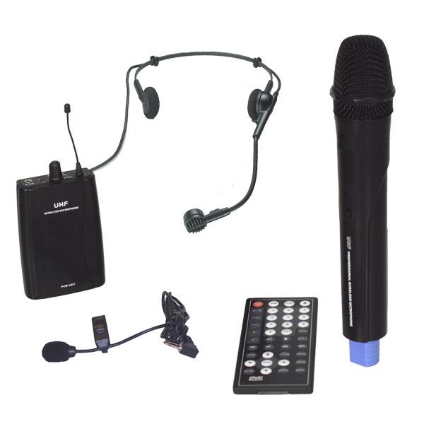 elivering a powerful amplifier with built-in rechargeable batteries and Bluetooth receiver, it is ideal for large indoor and outdoor events such as press conferences, sports venues, graduation ceremonies, musical productions - any setting requiring excellent, reliable, portable sound quality. uilt with the latest technologies to minimize and eliminate interference and feedback delivering stable frequency VENU100A delivers crisp, clear sound with dual UHF mic receivers for maximum versatility. he VENU100A utilizes high-capacity, rechargeable internal batteries and features the latest in multimedia technology. This unit includes a Bluetooth receiver, DVD/VCD/MP3/CD-R/RW player, telescoping handle and easy-glide rubber casters. The VENU100A is a must-have for schools, hotels, churches or anyplace in need of a versatile, dependable and portable PA system! |